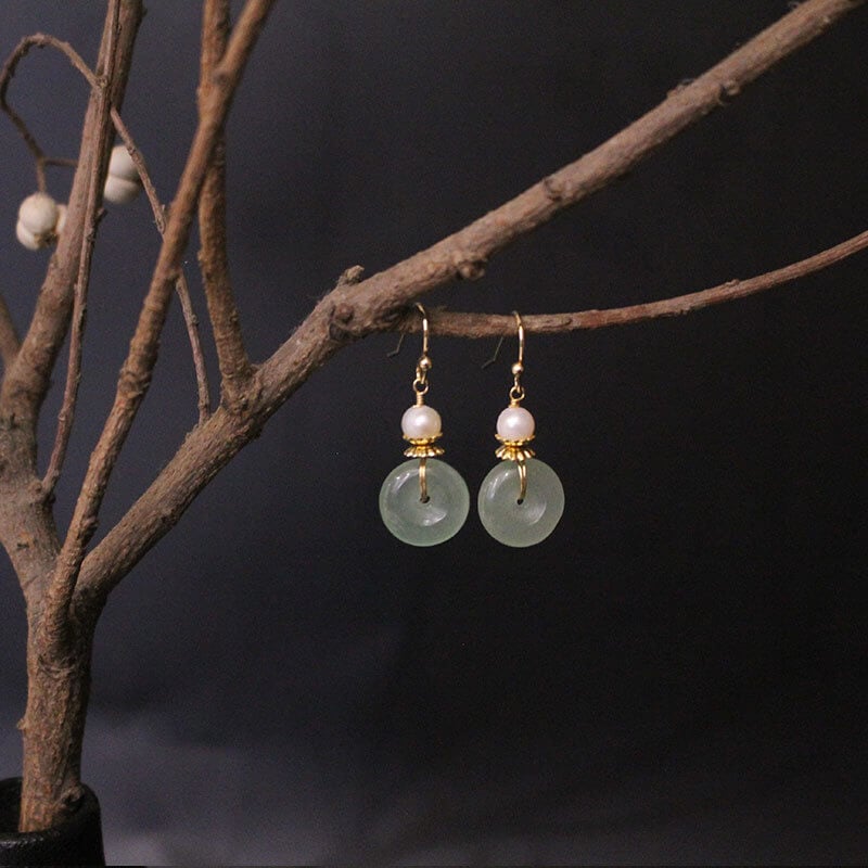 Package includes: 1 x Green aventurine jade ring safety buckle earrings