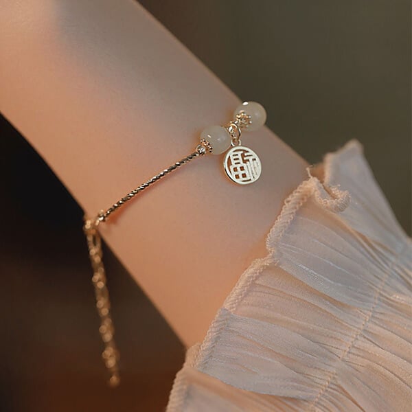 Fu Character Lucky Hetian Jade Bracelet- The simple and exquisite style design of the bracelet embellishes your wrist, shows your perfect wrist line, demonstrates your elegant temperament, and makes you more attractive.
